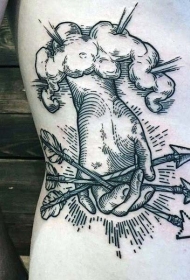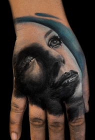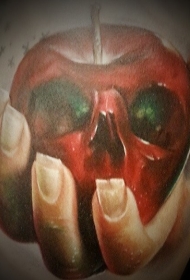 写实漂亮的女性手与骷髅形状的苹果纹身图案