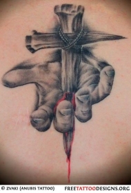 背部戏剧性的基督教主题彩色血腥纹身图案