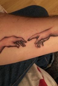 极简线条纹身 男生大臂上黑色的手部纹身图片