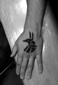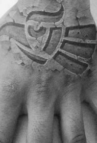 手背黑灰风格怪物头骨与眼睛纹身图案