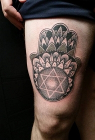 大腿黑色的埃及主题法蒂玛之手纹身图案