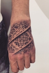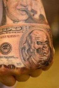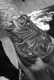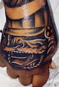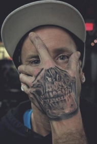 男性手背难以置信的黑白骷髅下颚纹身图案