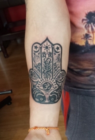 手臂黑色的法蒂玛之手与特殊符号纹身图案