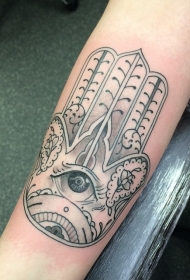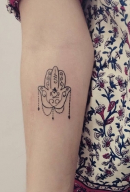 女生手臂黑灰点刺法蒂玛之手纹身图案