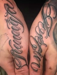 处在手部两边上一模一样的大英文纹身