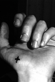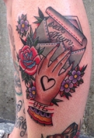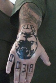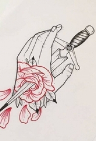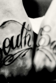 简单线条勾勒的手部英文单词和面具纹身手稿