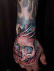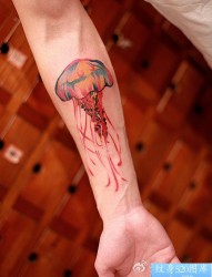 一幅女人手臂彩色水母纹身图片由纹身520图库推荐