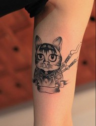 手臂武士猫咪纹身图片由纹身520图库推荐