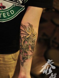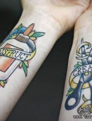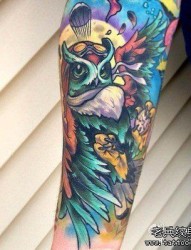 纹身520图库推荐一幅手臂彩色猫头鹰纹身图片