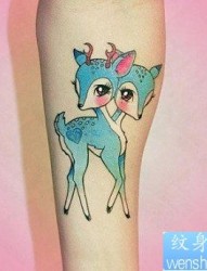 纹身520图库推荐一幅手臂小鹿纹身图片