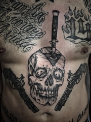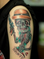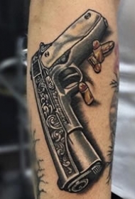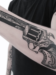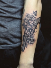 手臂上个性创意彩绘骷髅手枪纹身图案