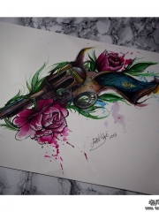 9张和手枪主题相关的纹身图案作品和手稿图片
