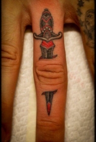 手指上的刺破皮肤匕首纹身图案