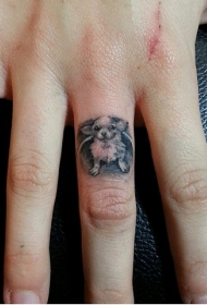 手指可爱的小黑白狗纹身图案