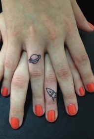 手指好看的行星飞船纹身图案