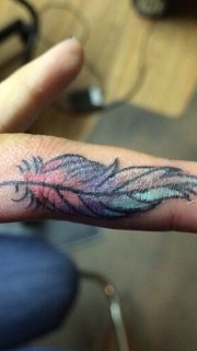 手指上小小的羽毛纹身