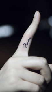 手指上小小的英文字纹身
