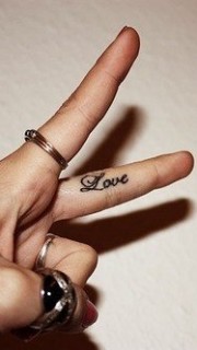 时尚的手指love纹身