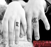 情侣对戒个性手指纹身作品