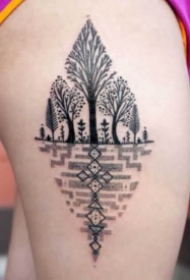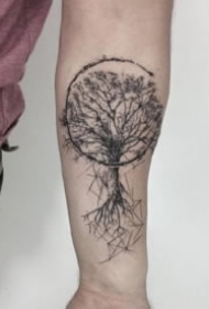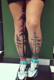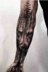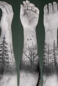 手臂上的9款帅气黑灰森林树木纹身作品图案