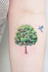 小树纹身 活力盎然的9张小清新的绿色小树纹身图片