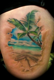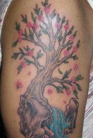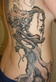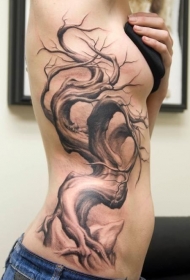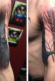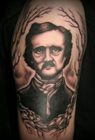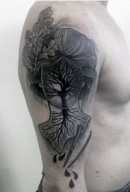 肩部黑灰色超现实主义风格的女人肖像纹身图案