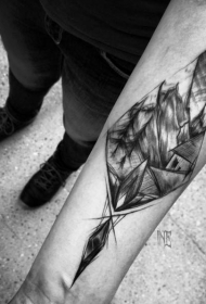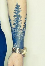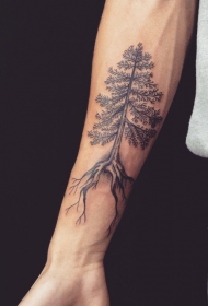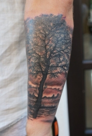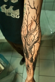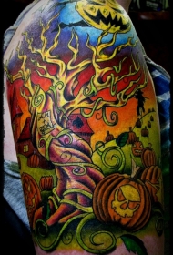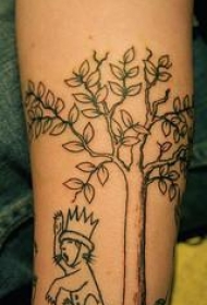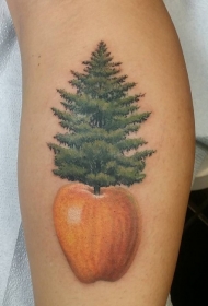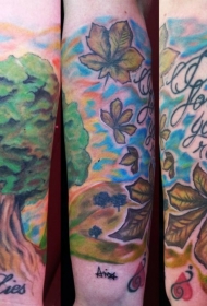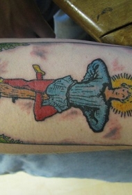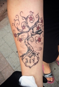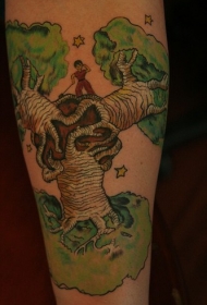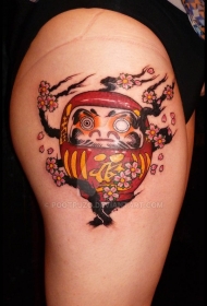 腿部彩色滑稽的不倒翁与开花的树纹身