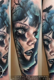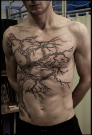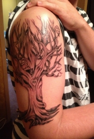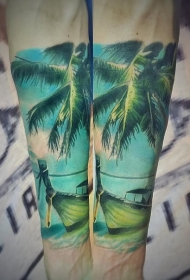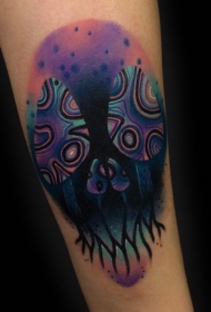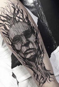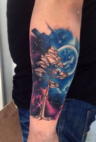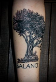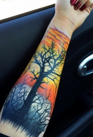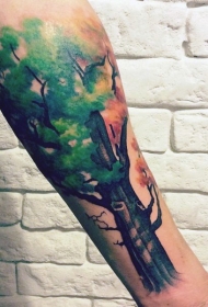 手臂PS图象处理软件风格的彩色大树与字母纹身
