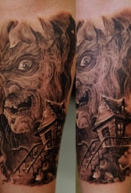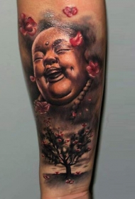 手臂滑稽的彩色如来佛祖雕像纹身图案