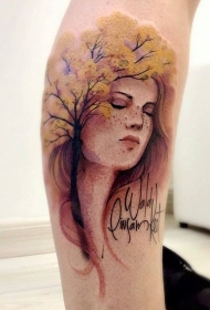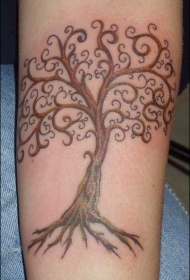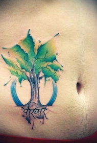 手臂小圆圈彩色大象与孤独的树纹身图案