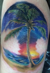 胳膊写实彩色猴与棕榈树和大象纹身图案