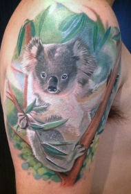 小臂点刺彩色大月亮与树木和森林动物纹身图案