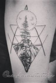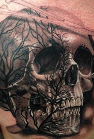黑灰风格尖叫女人与树枝手臂纹身图案