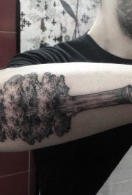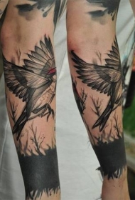点刺风格黑色的小鸟和树枝手臂纹身图案