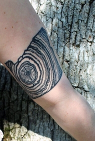 手臂黑色的树年轮纹身图案