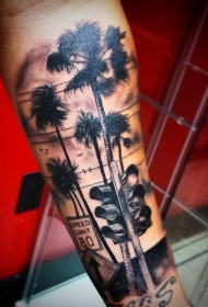 壮观的写实棕榈树与路标手臂纹身图案