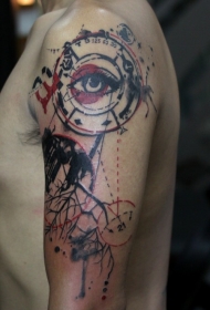 手臂眼睛和树元素泼墨线条纹身图案