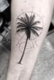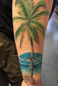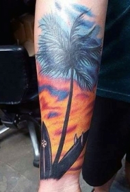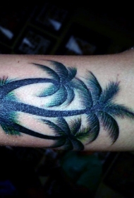 手臂非常漂亮的彩绘棕榈树纹身图案