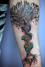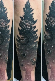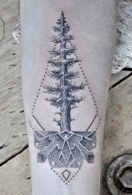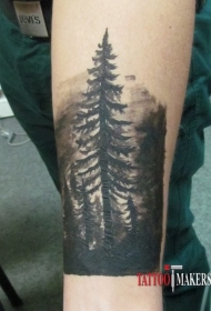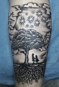 手臂可爱的幻想世界黑色树与人像纹身图案