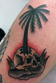 有趣的设计彩色小棕榈树与骷髅手臂纹身图案