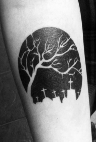 很棒的枫叶轮廓与孤独的树手臂纹身图案