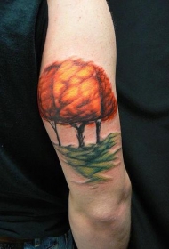 手臂彩色唯美的枫树纹身图案