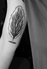 手臂黑灰枯树和字母创意纹身图案