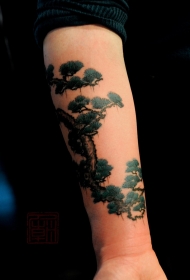 手臂很酷的黑色树纹身图案