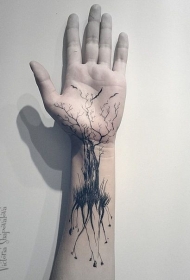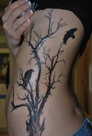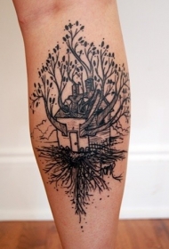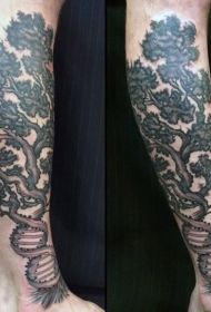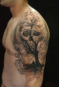 大臂和肩部梦幻的树骷髅小鸟纹身图案
