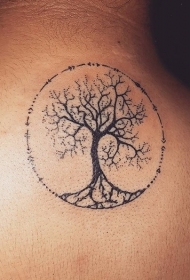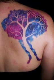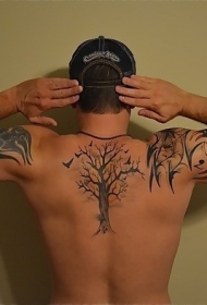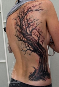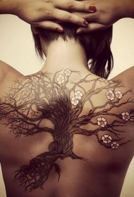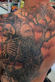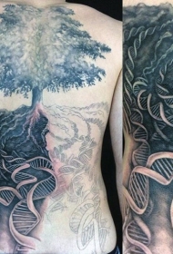 背部令人难以置信的黑白大孤独与DNA纹身图案