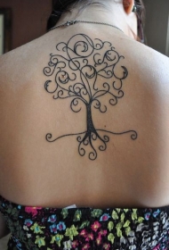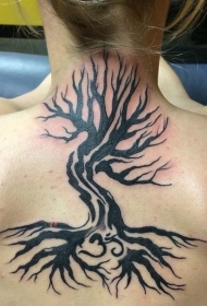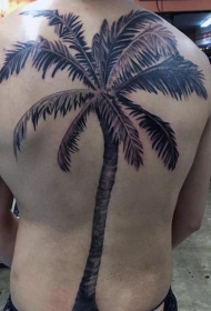 背部很酷的黑色线条椰子树和螃蟹纹身图案