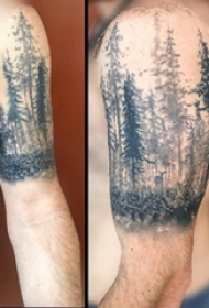 树林纹身图案 男生手臂上创意的树林纹身图片