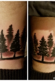 树林纹身图案 男生小腿上黑灰的树林纹身图片