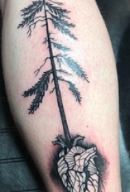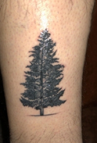 生命树纹身素材 男生小腿上黑色的松树纹身图片
